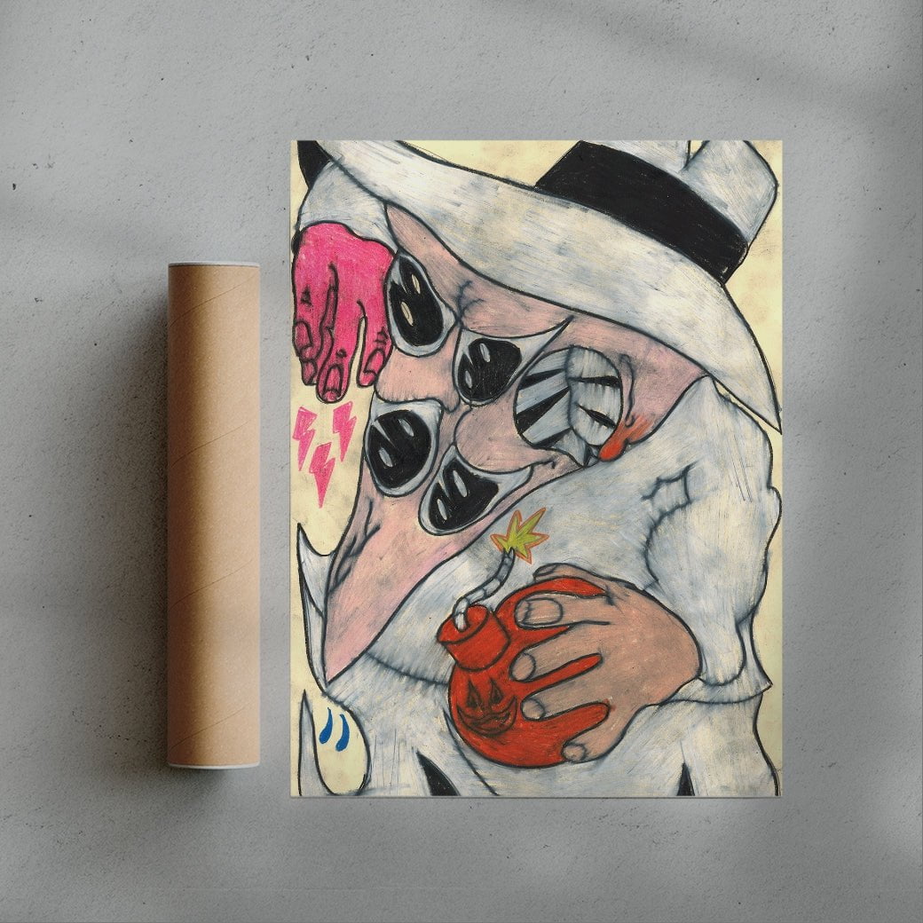 Philadelphia-based artist Austin Ansbro creates bold. chaotic reinterpretations of pop culture icons. blending nostalgia with surreal distortion. His style. marked by vibrant colours. exaggerated features. and raw. hand-drawn energy. reimagines familiar characters as playful yet unsettling caricatures. Influenced by cartoons. comics. and punk zine culture. his work explores themes of identity. memory. and consumerism. inviting viewers to confront the absurdity and humour beneath beloved imagery.